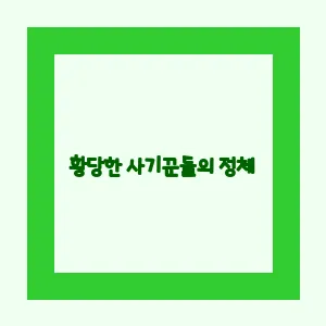그렇지 않나요? 때때로 우리 주변에서 일어나는 황당한 사기 사건들을 듣고 깜짝 놀라곤 합니다. 어떻게 저런 일이 일어날 수 있는지, 그리고 그 사기꾼들은 어떤 사람들일까요?